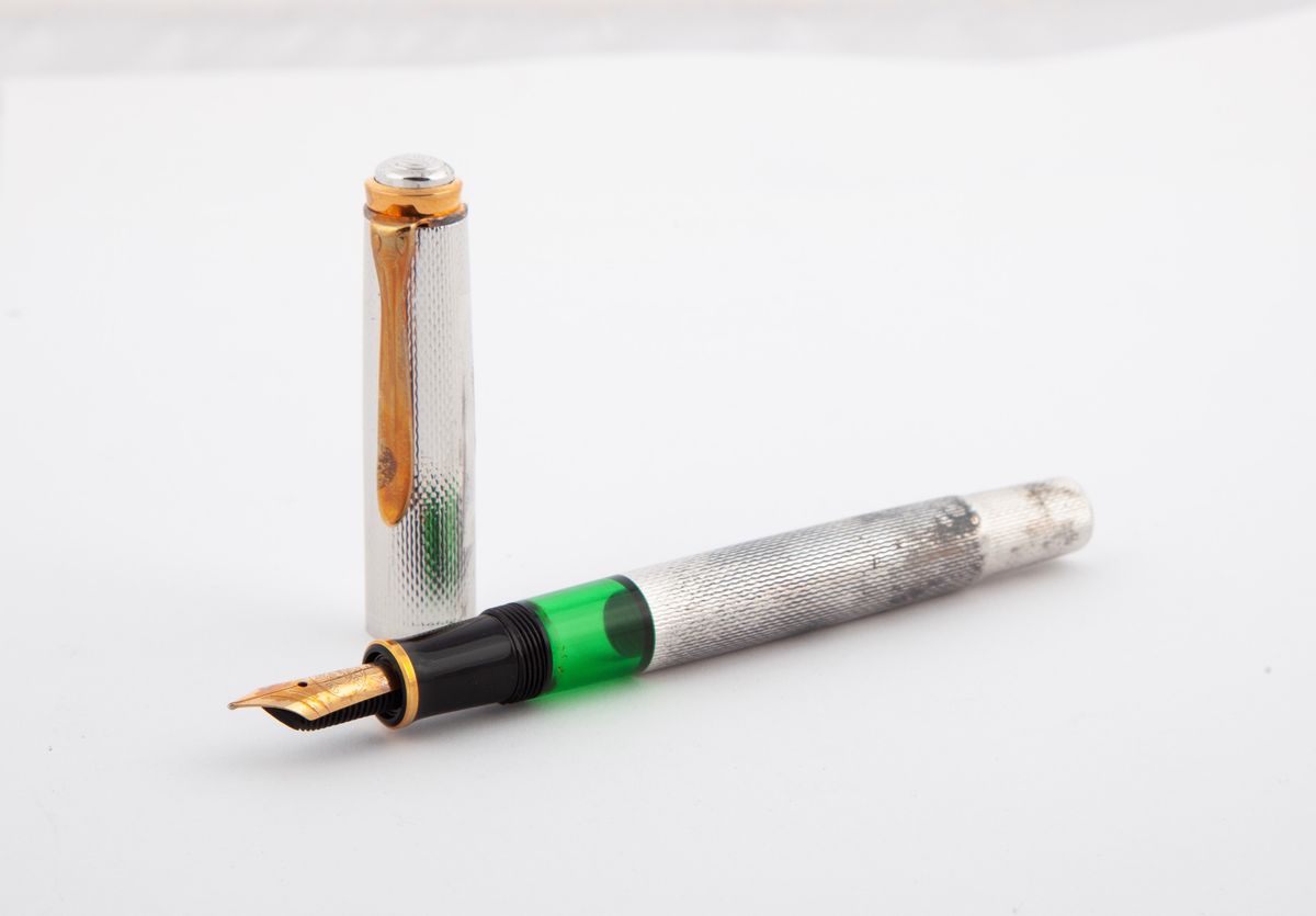 Pelikan Revival M750 Anniversario 1838-1988 - Penna stilografica in metallo argentato