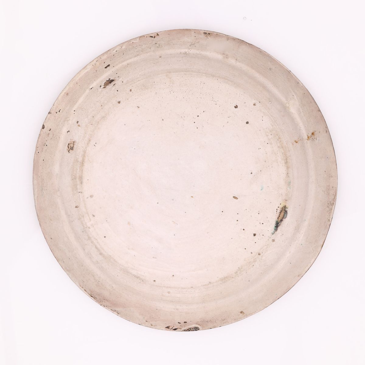 decorato in rosso, verde e blu; al centro un fiore stilizzato entro ghirlanda racchiusa da ampia bordura maculata entro anelli manganese