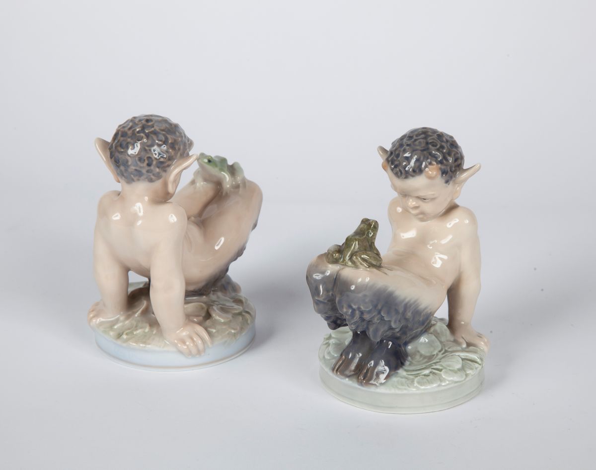 raffiguranti un giovane fauno con un ranocchio. Entrambe con marca e numero di modello 1713