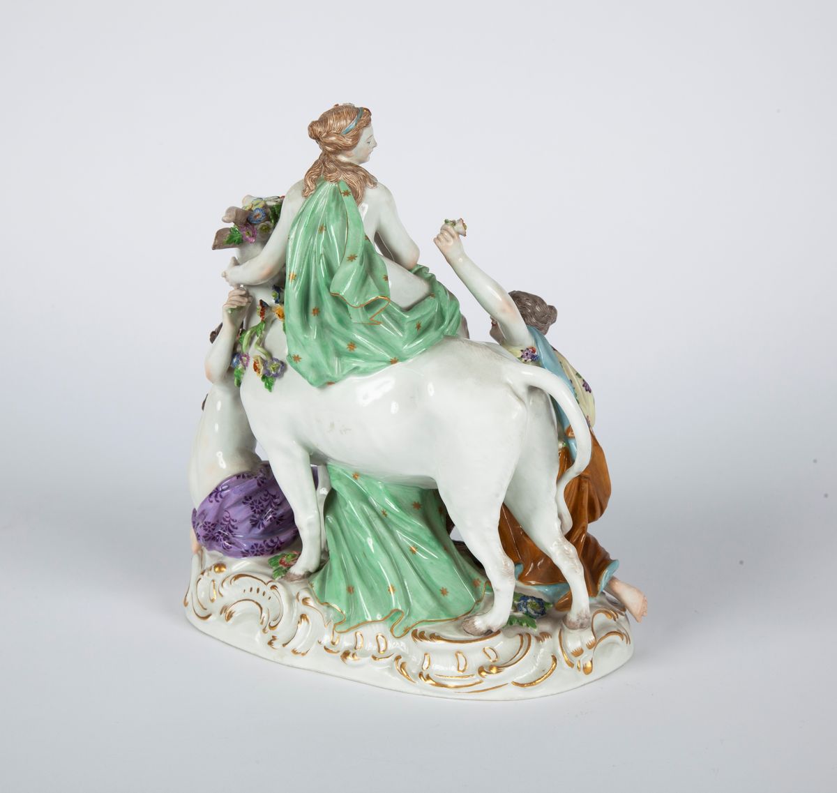 Gruppo in porcellana policroma, Meissen, modello di Johann Joachim Kaendler, seconda metà del XIX secolo