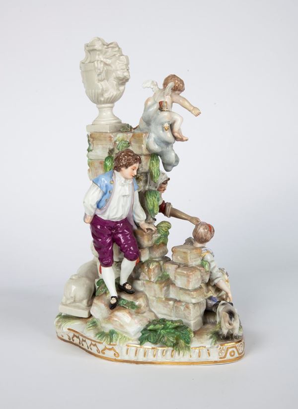 Gruppo in porcellana policroma, Meissen, seconda metà del XIX secolo