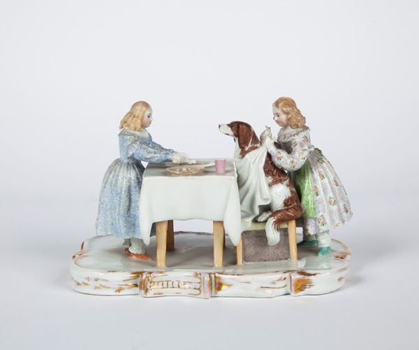 Gruppo in porcellana policroma, XX secolo