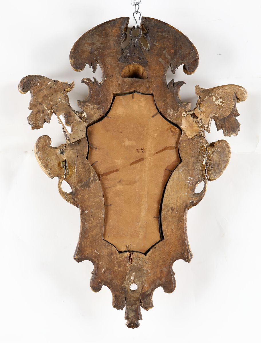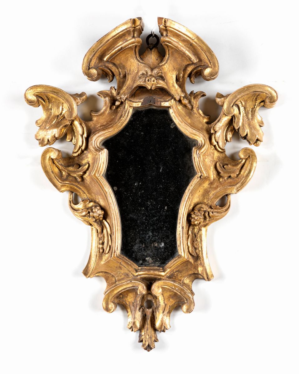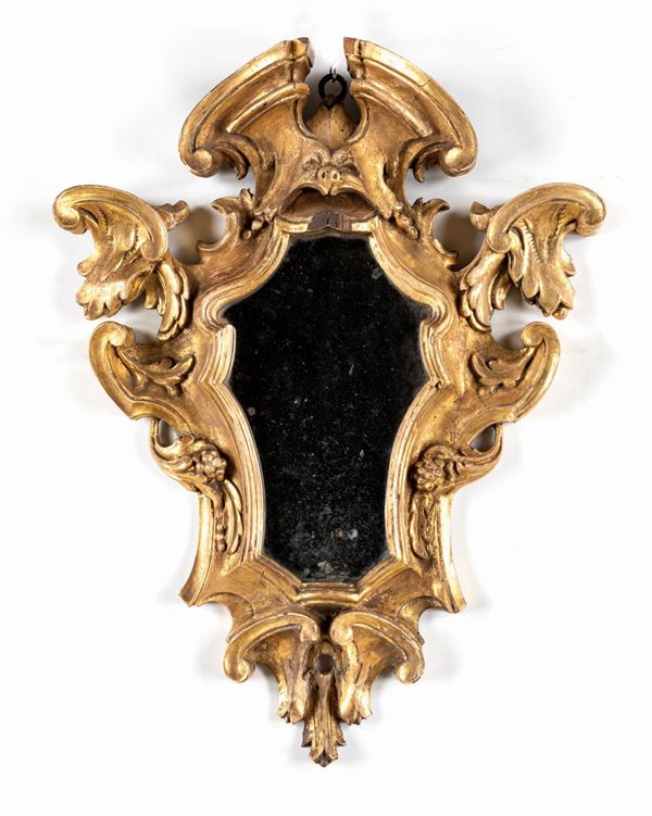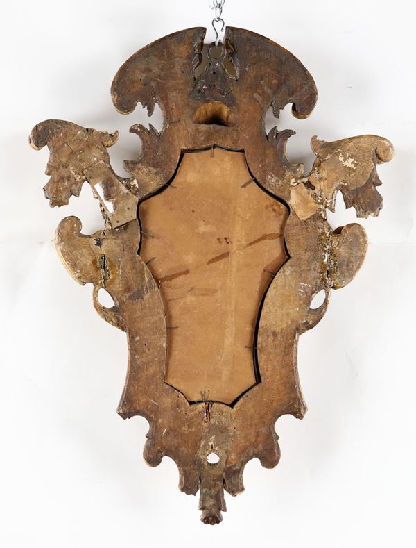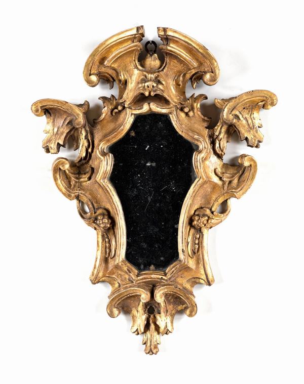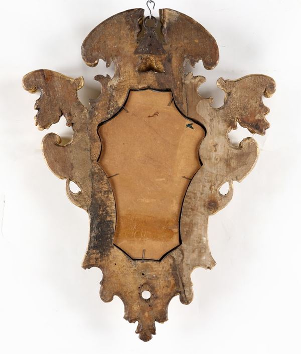 Coppia di piccole specchiere in legno dorato, Roma, XVIII secolo