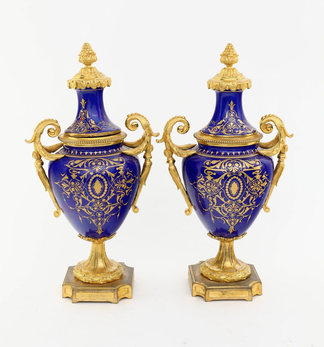 Coppia di piccoli vasi in porcellana e bronzo dorato, XIX secolo