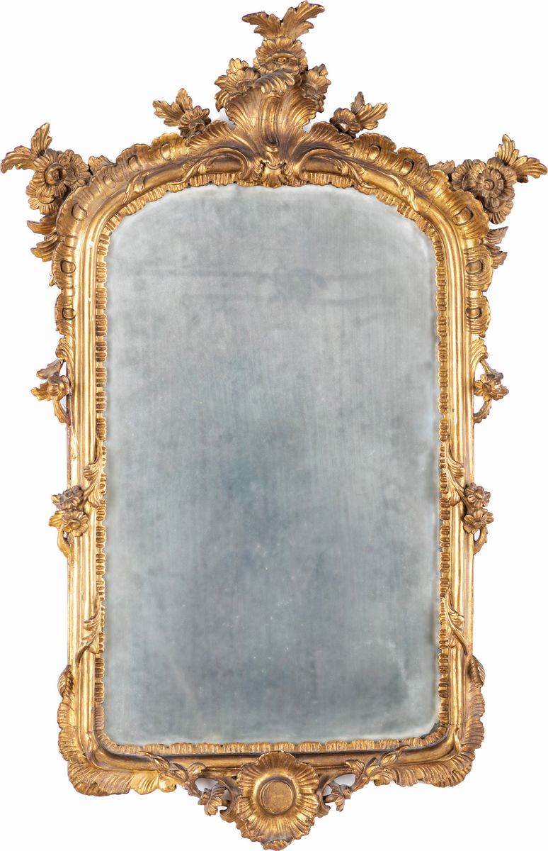 Coppia di specchiere in legno intagliato e dorato a mecca, Napoli, XVIII secolo