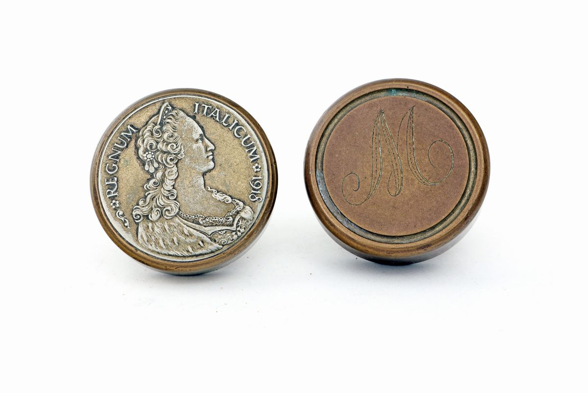 con impugnatura a disco caratterizzata da una M e da moneta con profilo femminile con Regnum Italicum 1918