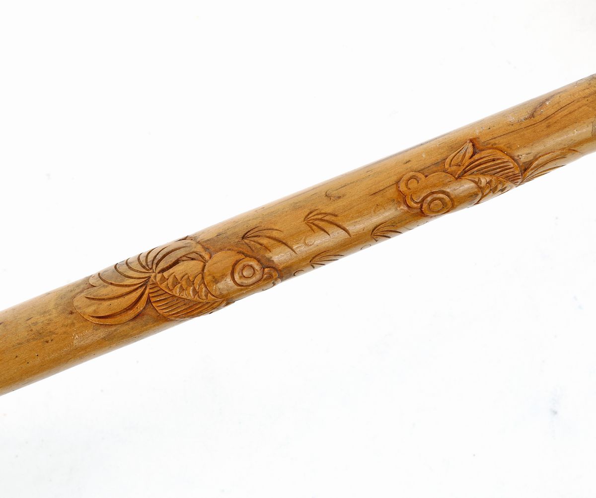 con pomolo e canna intagliata a scaglie; l'altro caratterizzato da due figure di carpa intagliate in rilievo