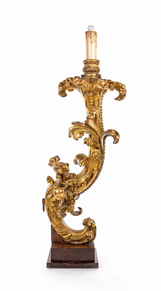 Grande torciera in legno scolpito, intagliato e dorato, Roma, fine del XVII secolo