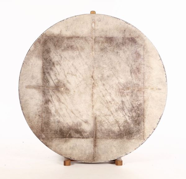 centrato da scacchiera in commesso di marmi bianco e nero; completo di figure in celluloide per il gioco degli scacchi