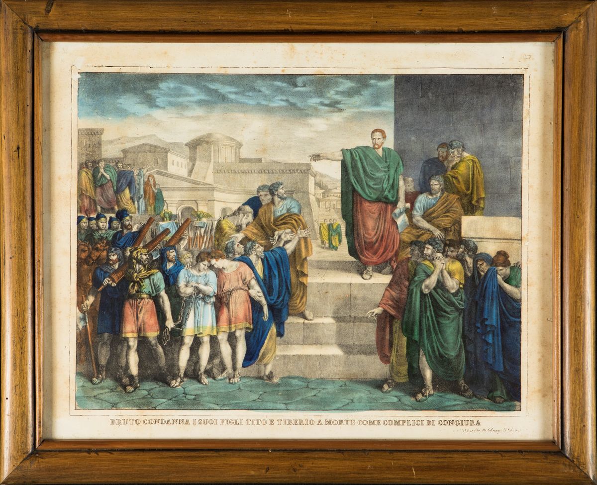 a) Bruto condanna i suoi figli Tito e Tiberio a morte come complici di congiura b) Orazio ritornando vincitore dei Curiazii, uccide sua sorella