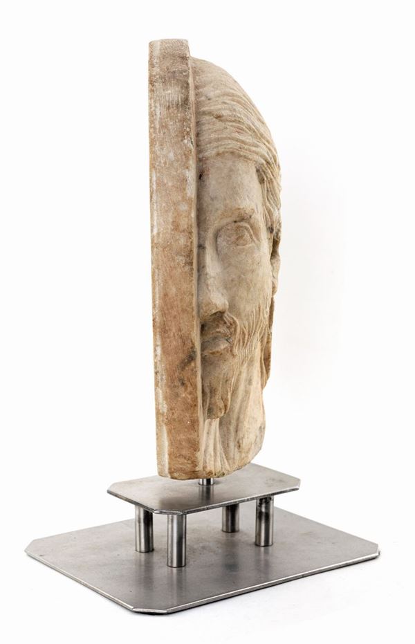 con profilo di Cristo in bassorilievo, supporto in acciaio