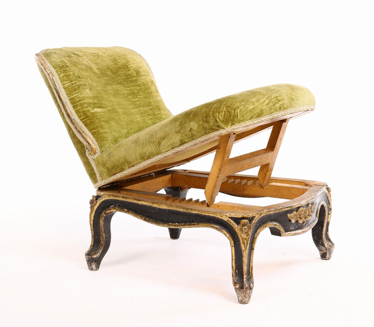 Poltroncina bassa in legno laccato nero e oro, Italia meridionale, XVIII/XIX secolo