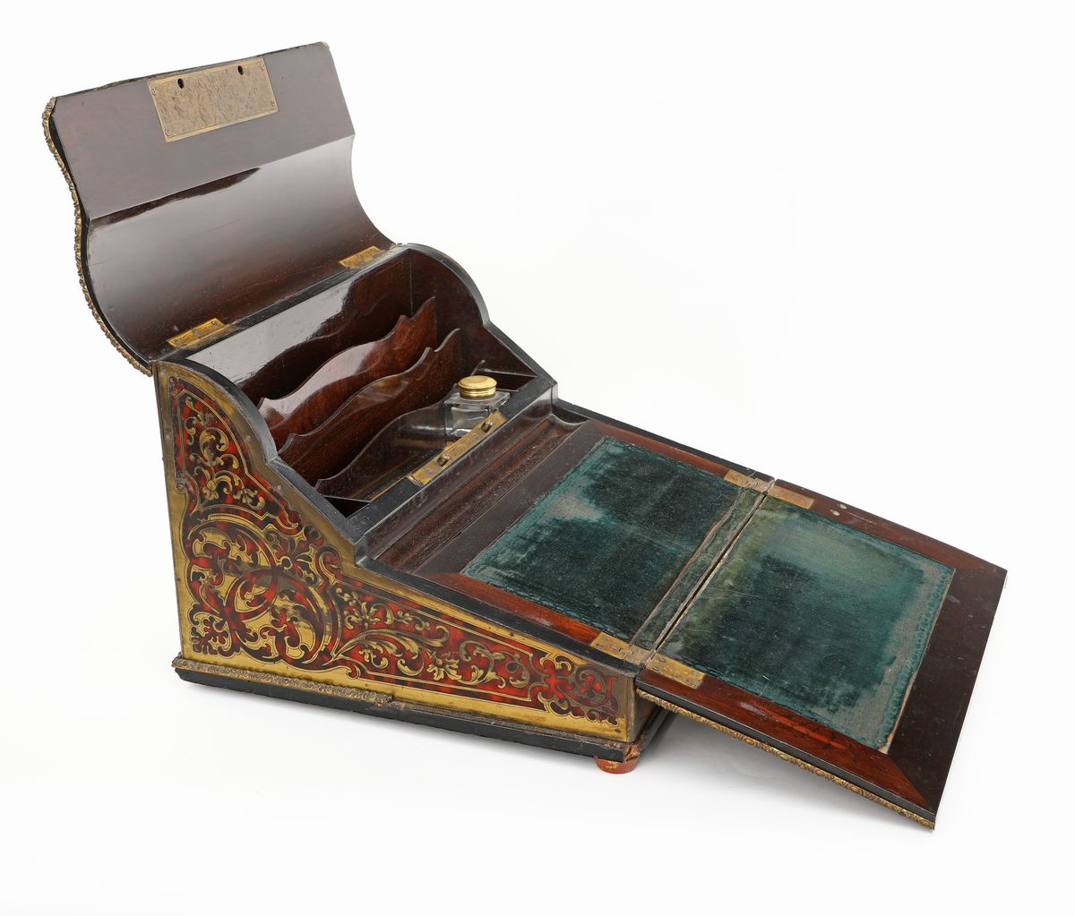 Portacarte in palissandro con calamaio, Francia, XIX secolo
