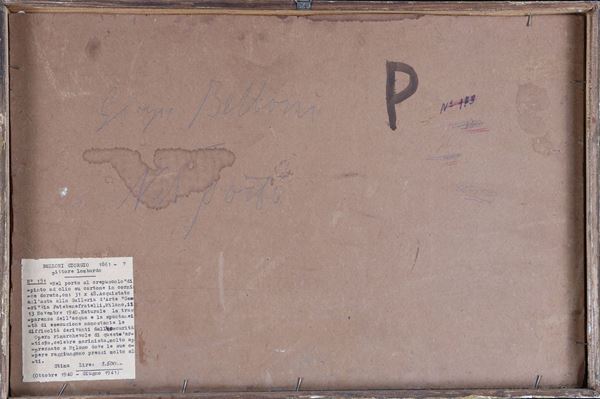 Firmato in basso a sinistra "G. Belloni". Al verso, etichetta d'epoca con indicazioni sull'autore e sull'opera.
