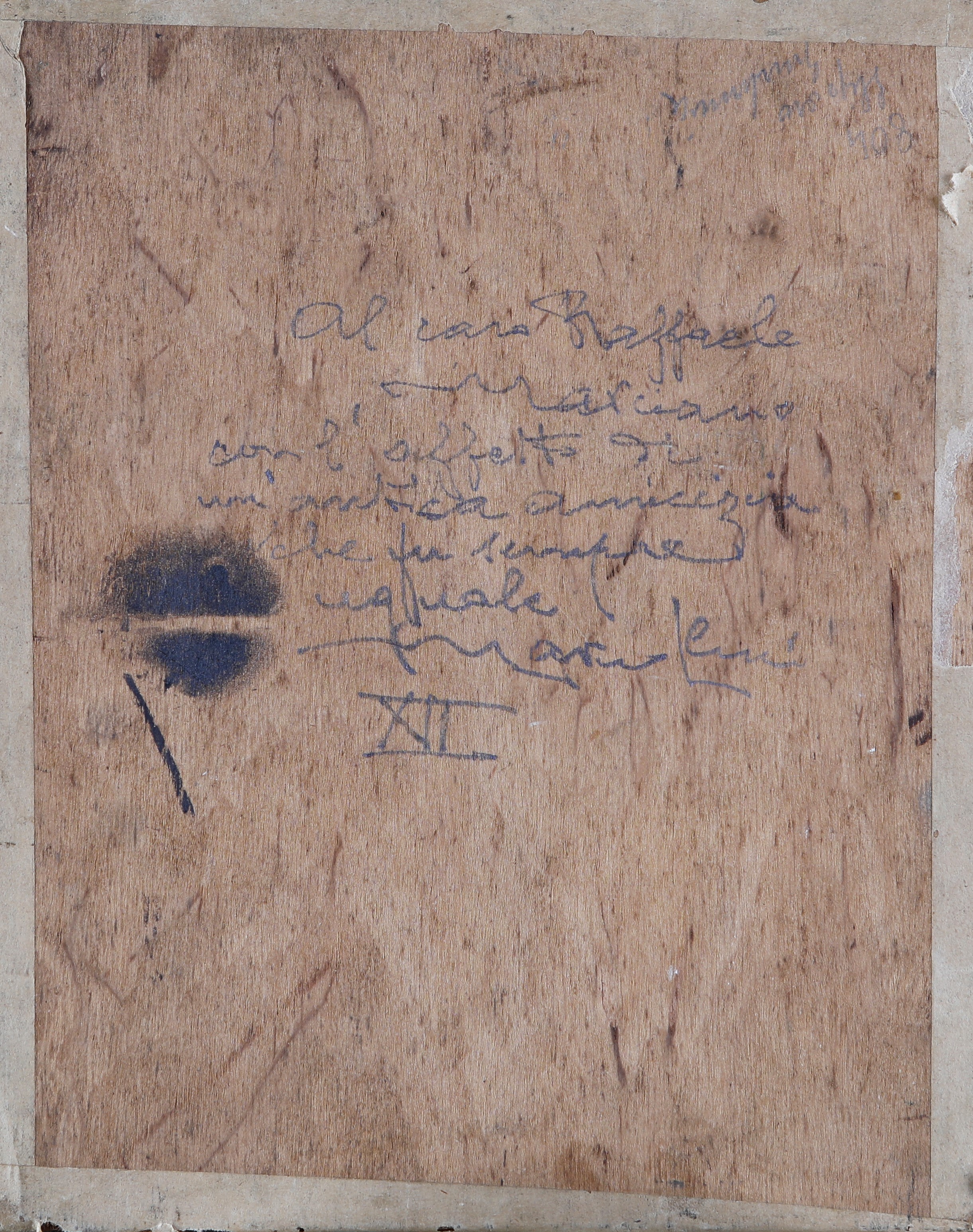 Firma sul fronte in basso a destra "M.Lenci". Al verso reca dedica di pugno firmata dall'artista