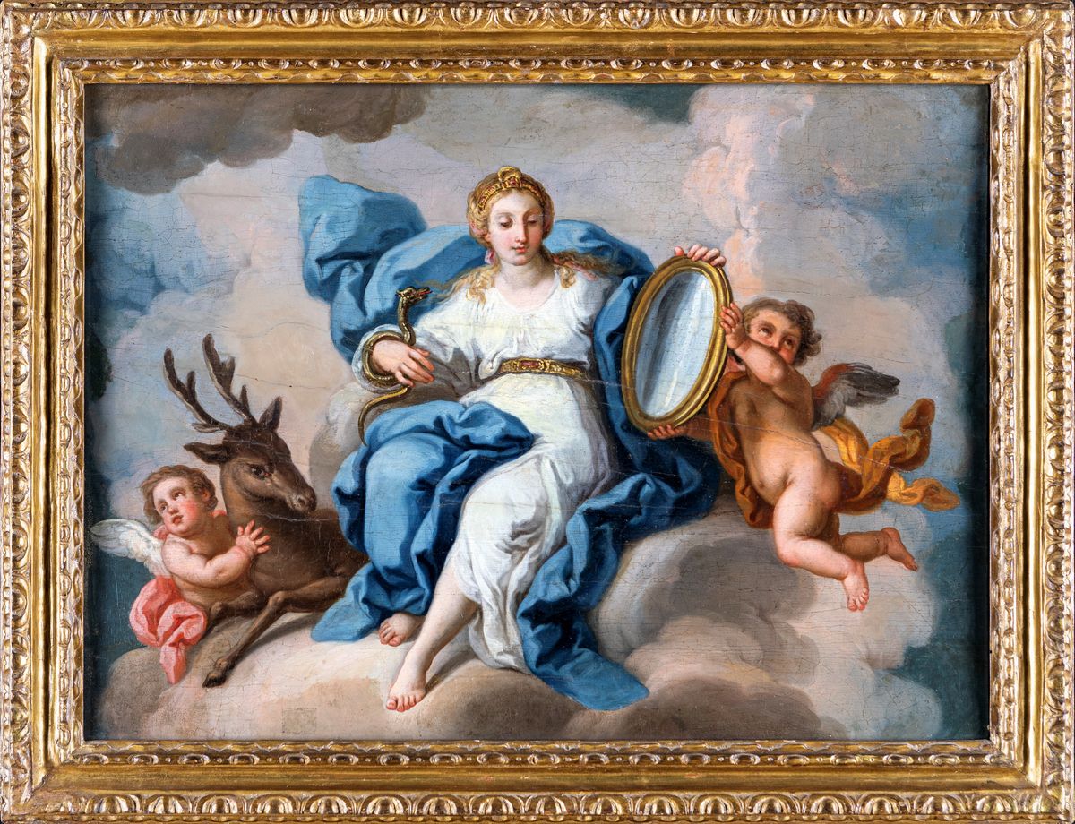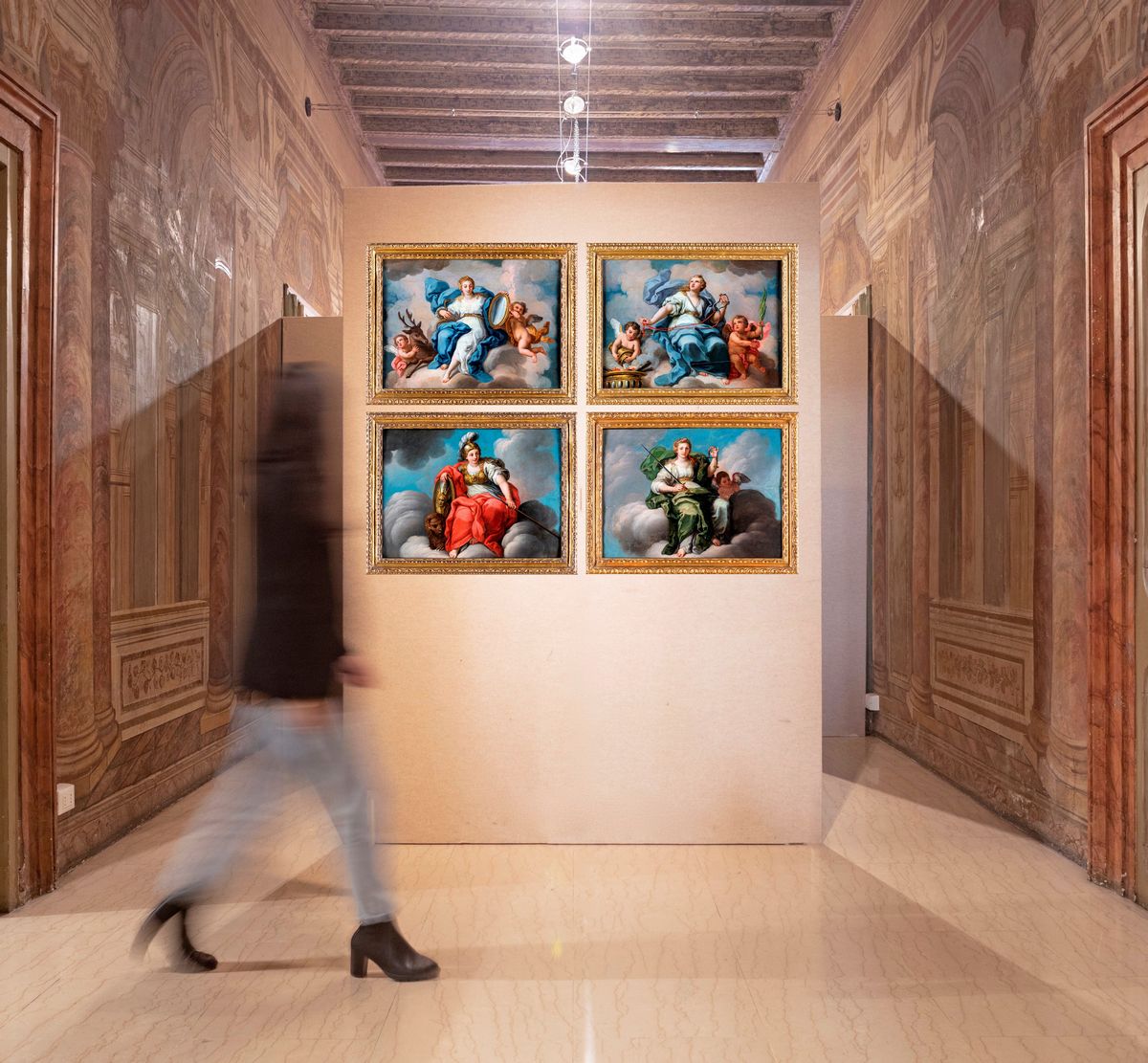 Rappresentazioni delle allegoria di Prudenza, Temperanza, Fortezza e Giustizia.