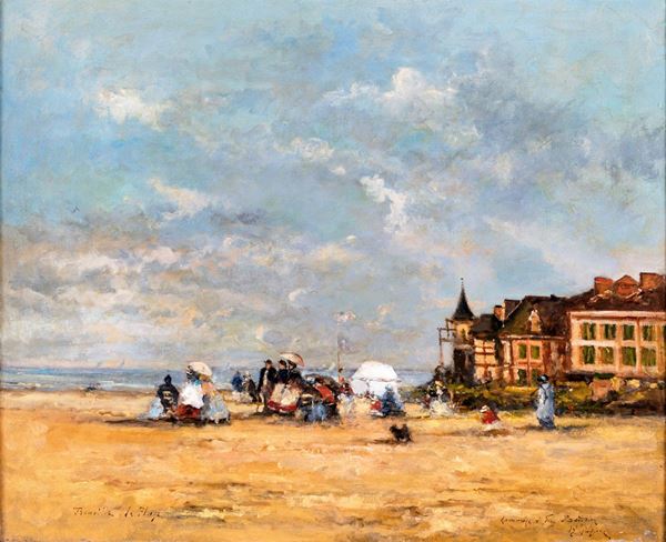 Iscrito in basso a sinistra. "Trouville. La plage", e in basso a destra "Hommage à Eug. Boudin". Firmato in basso a destra "R. Ragione".