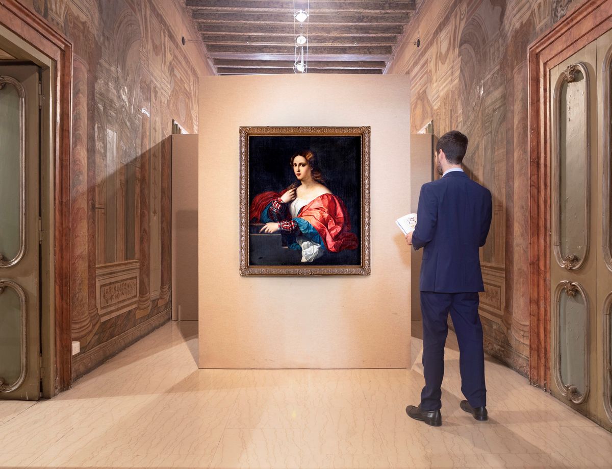 Copia di grande qualità dal celebre dipinto di Palma il Vecchio datato 1518 e conservato a Madrid presso il Museo Thyssen-Bornemisza