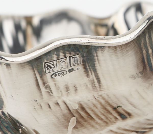 con due vaschette a forma di conchiglia contrapposte e con vertice incurvato a modo di presa; piedi a valva