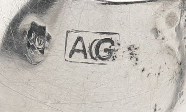 di forma sferica con foglie cesellate, poggiante su piede circolare; manico sagomato. Difetti