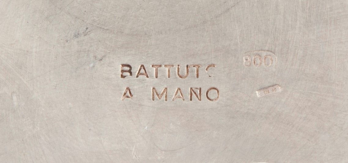 Brocchetta in argento battuto a mano e piccolo calice Brandimarte