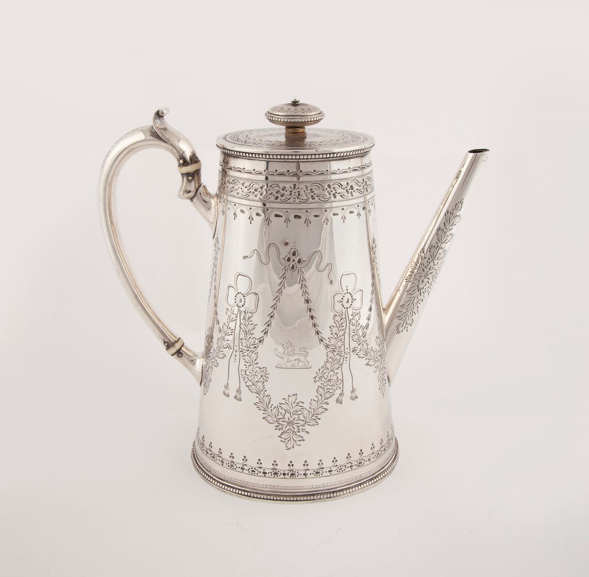 Caffettiera in argento 925, Londra, 1873, argentiere George Angel