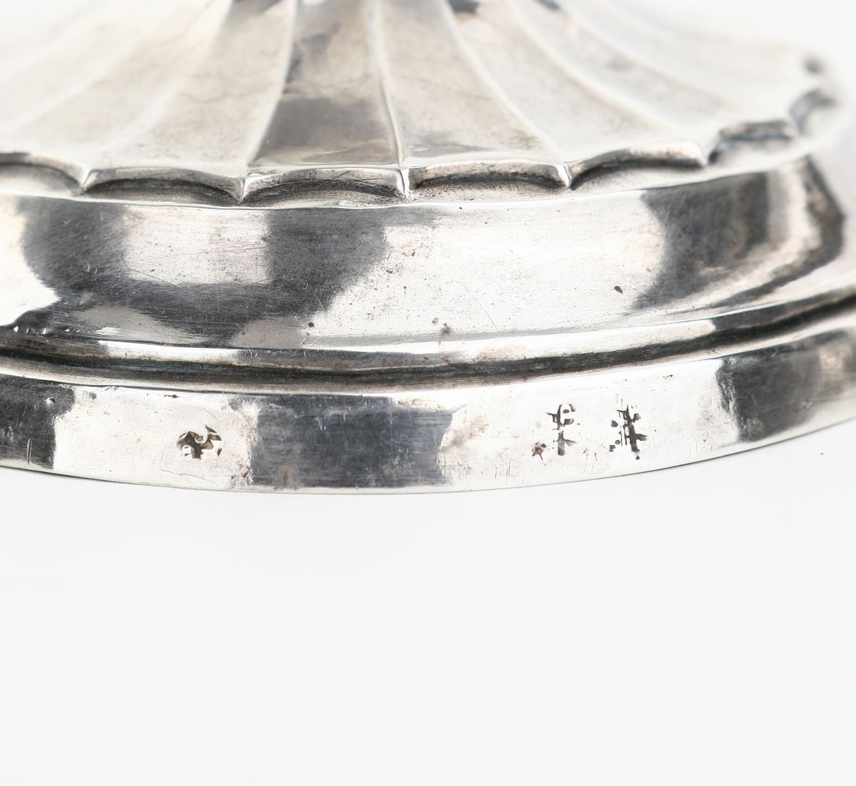 stelo rastremato sfaccettato con profilo superiore sottolineato da greca; piede circolare