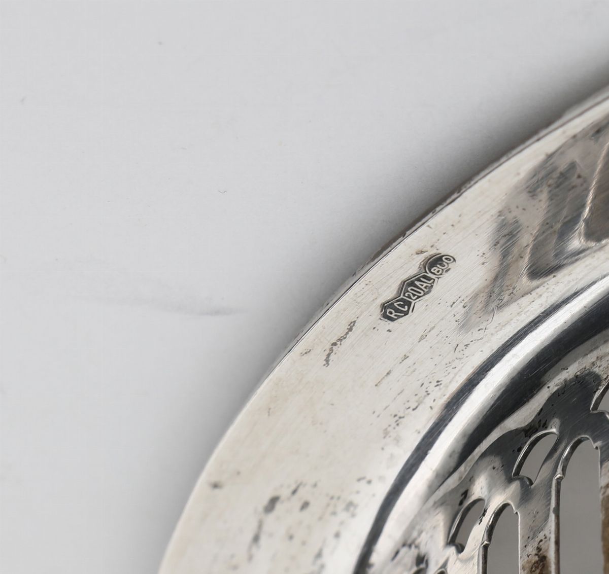 di forma circolare con ringhiera traforata su tre piedi a ricciolo