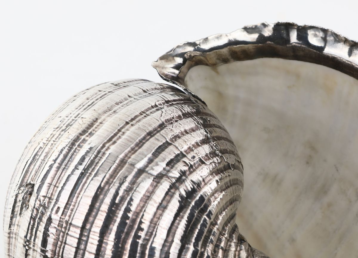 Conchiglia rivestita in lamina d'argento