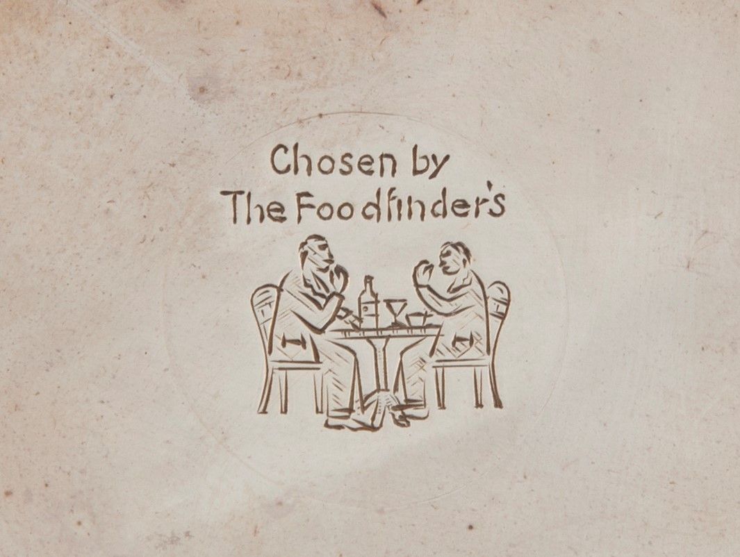 di forma squadrata con iscrizione entro ghirlanda e corone angolari incise; inciso sul coperchio "Choosen by The Foodfinder's"; sotto la base, etichetta dell'argenteria Anatriello