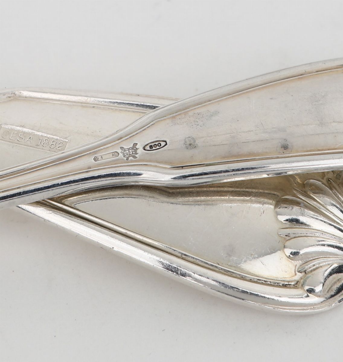 Servizio di posate in argento, manifattura Cesa, Alessandria, modello "conchiglia"