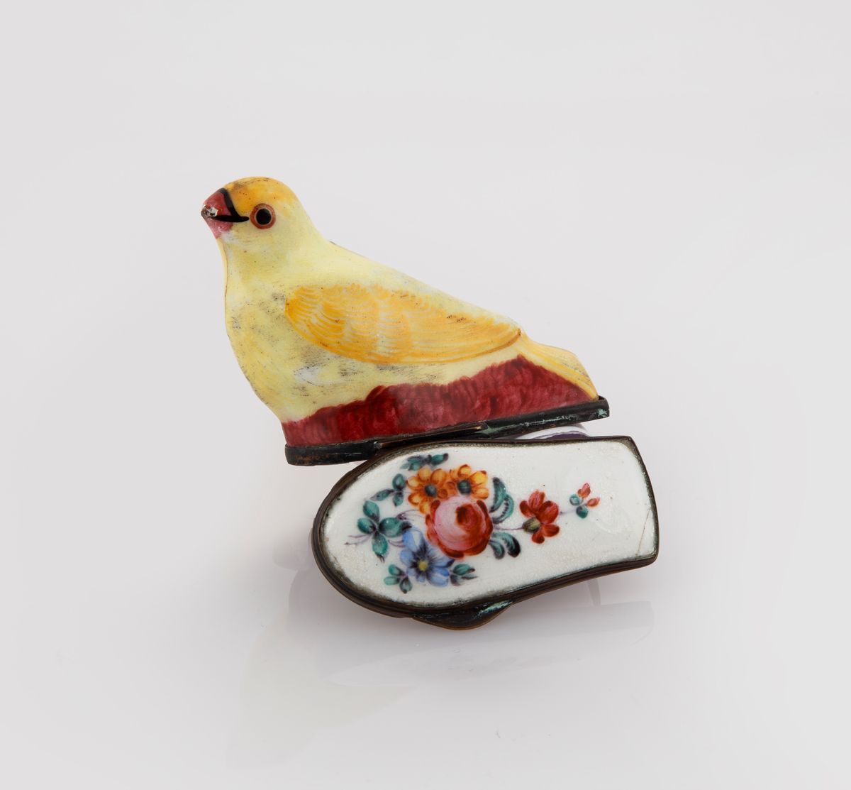 Tabacchiera in rame smaltato, Bilston, XVIII secolo