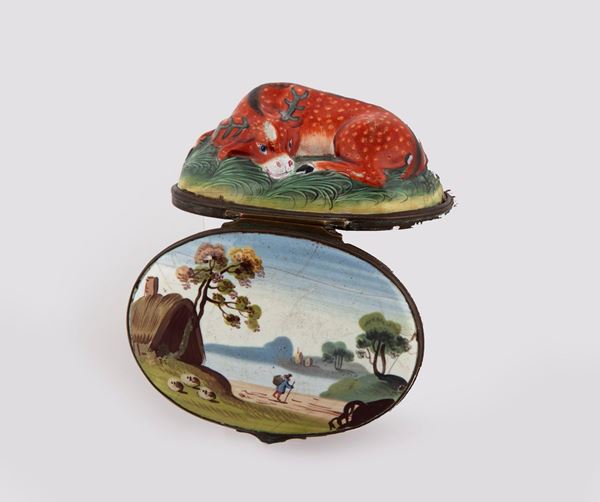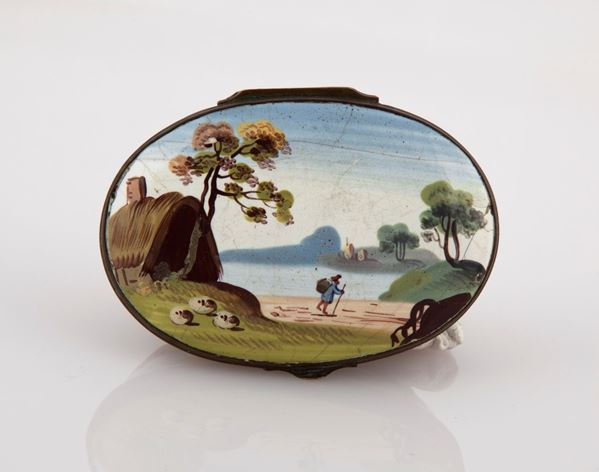 Tabacchiera in rame smaltato, Bilston, XVIII secolo