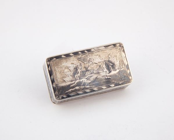 Tabacchiera rettangolare in argento 875/1000 niellato, Mosca 1841, argentiere non identificato