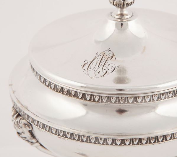 Zuccheriera in argento con coperchio, austro-ungarico, 1830 - 1840, argentiere F.P.