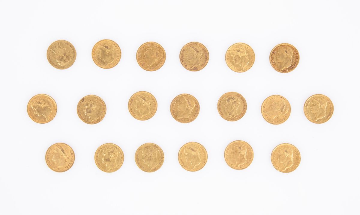 Lotto 19 monete da 20 Franchi Napoleone I Francia