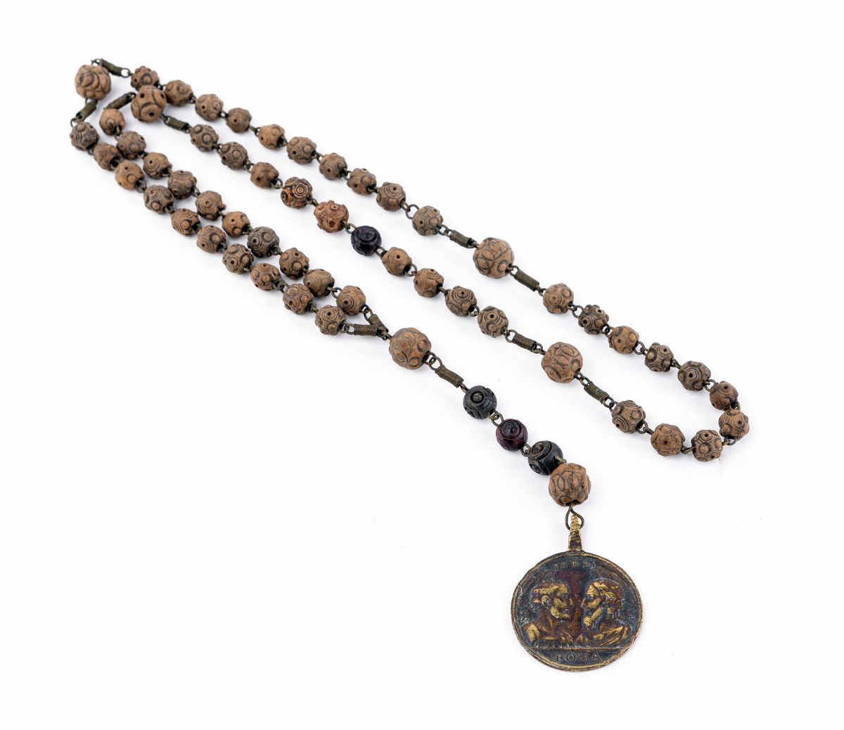 Montata su rosario con grani in legno di ulivo, lunghezza complessiva cm. 63
