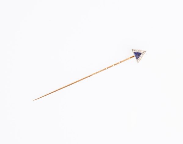 Spillone massonico in oro 18 kt con zaffiro e diamanti della fine XIX - inizi XX secolo