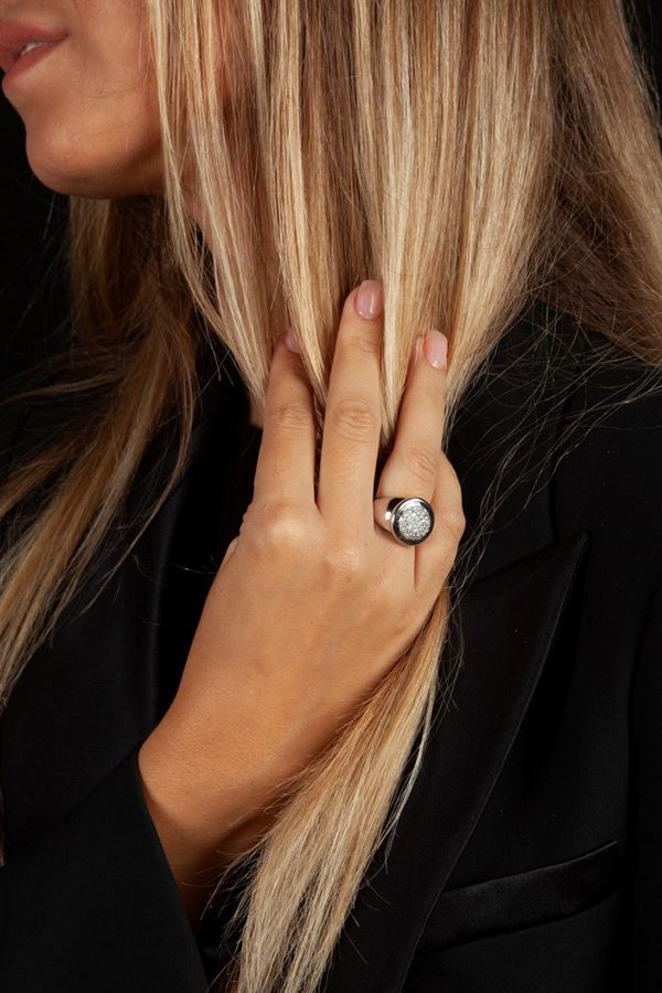 Anello chevalier in oro e pavè di diamanti