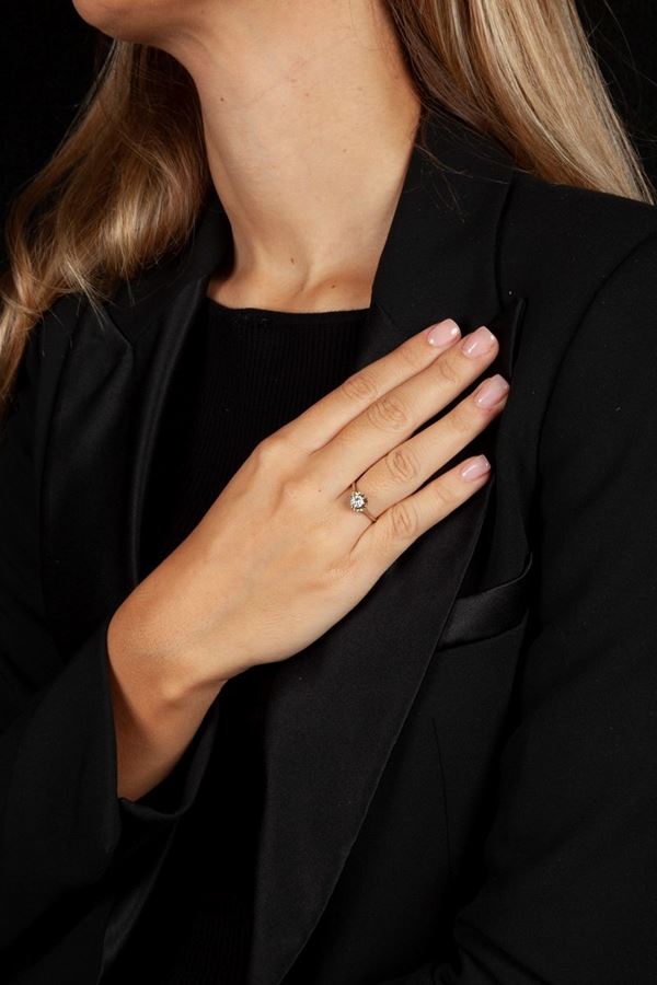 Oro bianco 750/000. Diamante taglio brillante ct. circa 0,28 H/I VVS/VS. Peso complessivo gr. 2,70.