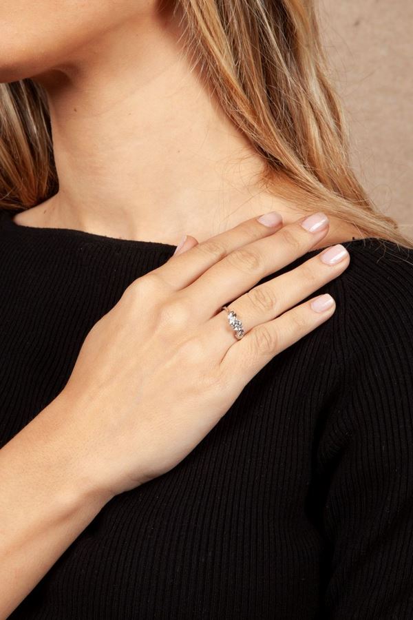 Oro bianco 750/000. Diamante naturale ct. 0,50 ca. prob. G VS1. Peso complessivo gr.2,60