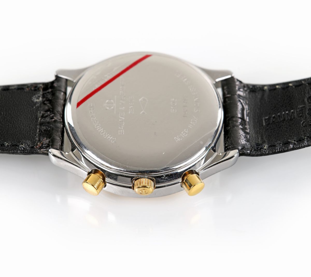Orologio da polso con cassa in acciaio e oro. Movimento meccanico a carica automatica con cronografo e datario. Diametro 36 mm, condizioni NOS completo di scatola e garanzia