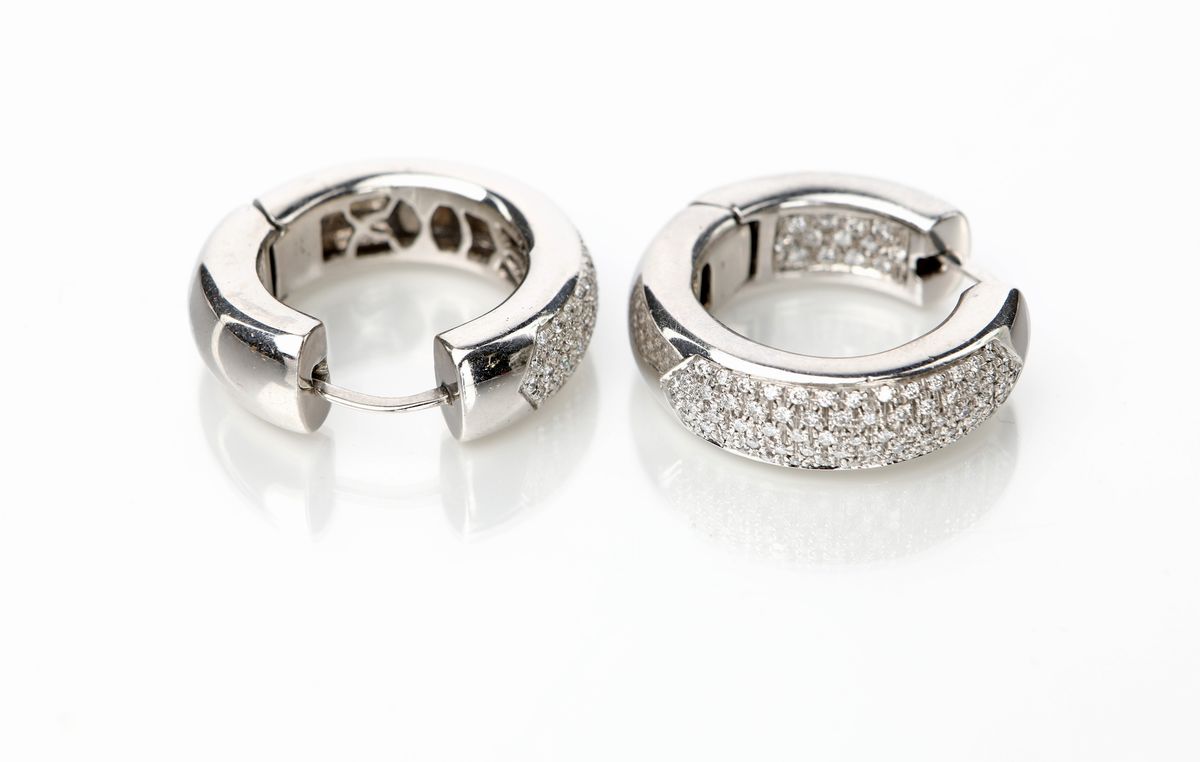 Coppia di orecchini a cerchio in oro e brillanti