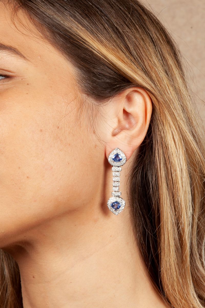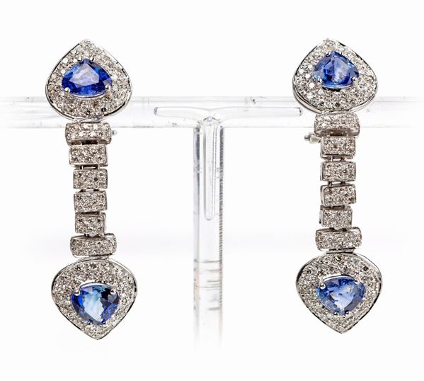 Coppia di orecchini in oro brillanti e zaffiri