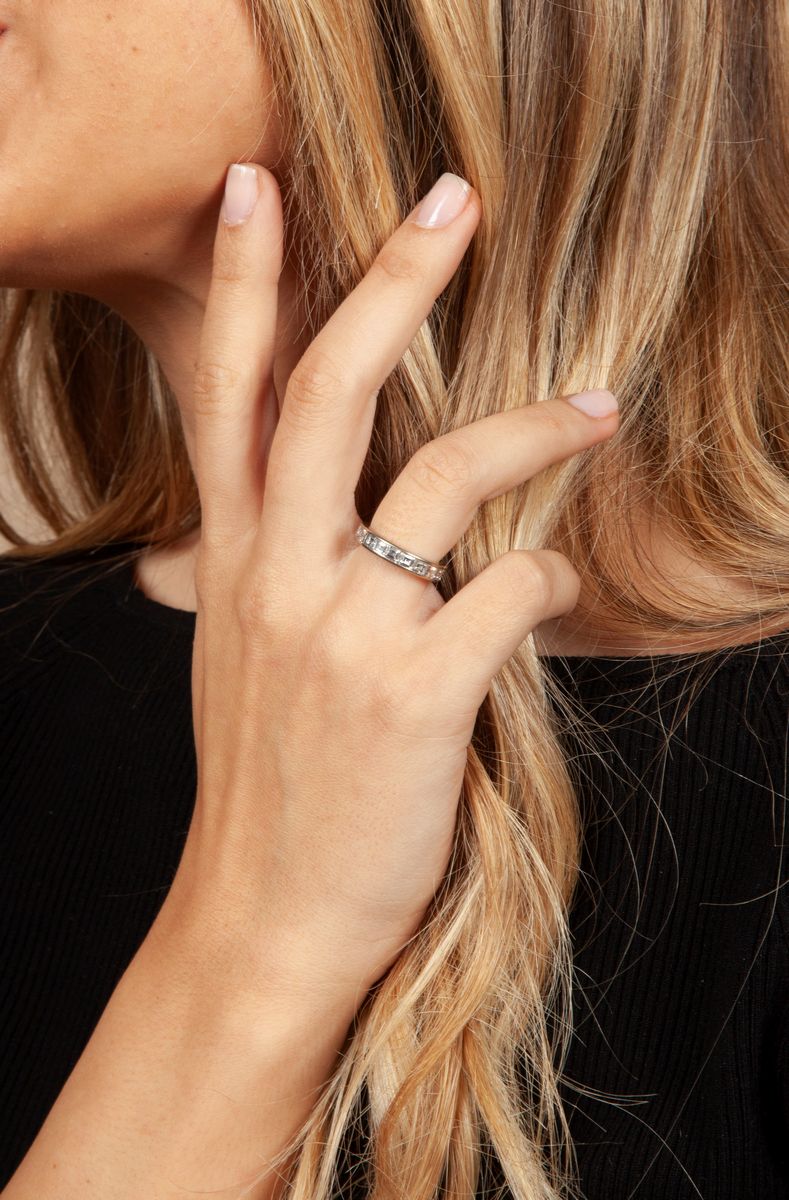 Oro bianco 750/000; diamanti taglio gradini ct. 2 ca. GH VS. Peso complessivo gr. 4,70