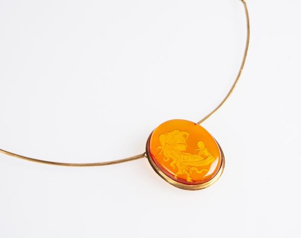 Oro giallo 750/000 e cammeo su pasta vitrea. Peso complessivo gr. 17,50