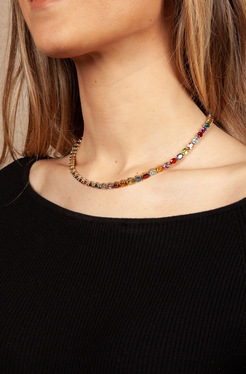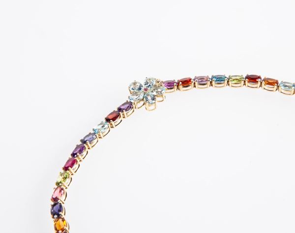 Oro giallo 7520/000. Amestiste, peridoti, tormaline, rubelliti, topazi, granati, ioliti. Peso complessivo gr. 40