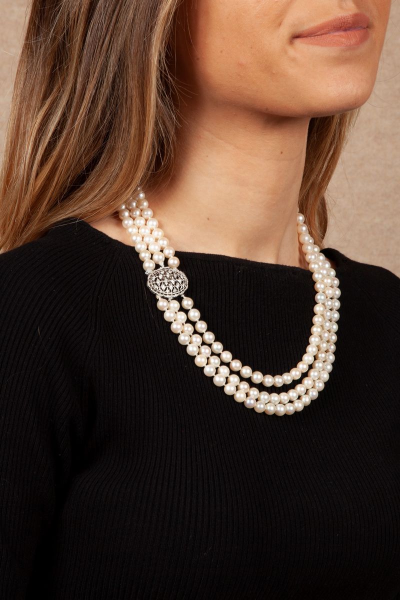 Mario Buccellati collana di perle con chiusura in oro e brillanti.