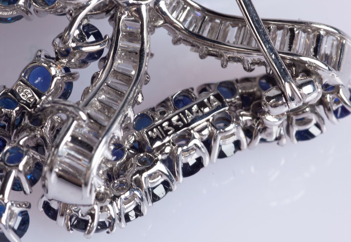 Missiaglia spilla in oro bianco diamanti e zaffiri