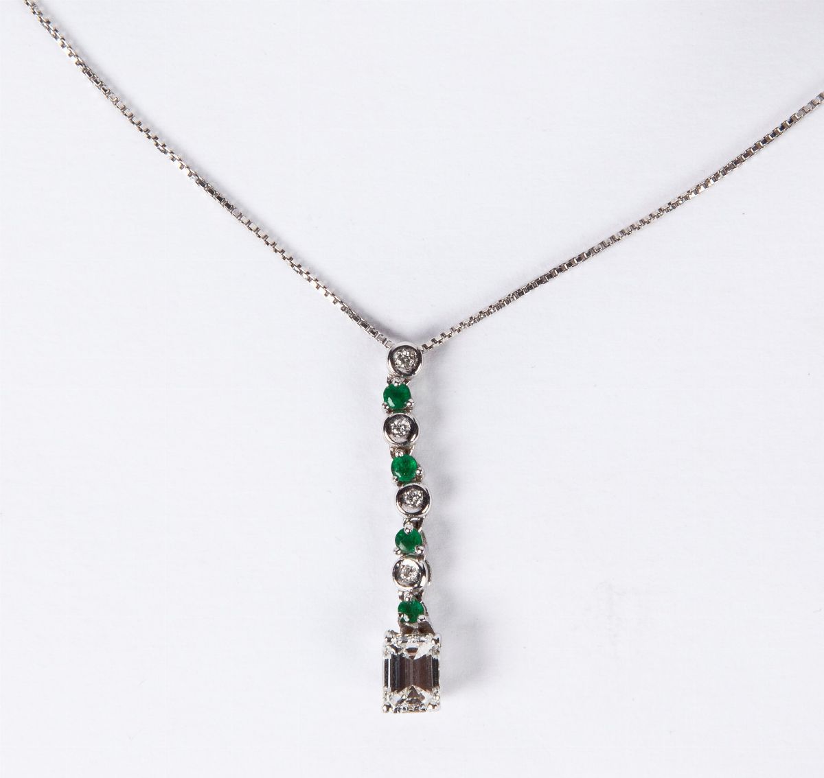 Oro bianco 750/000. Diamante in taglio smeraldo ct. 0,65. Peso complessivo gr. 2,90.